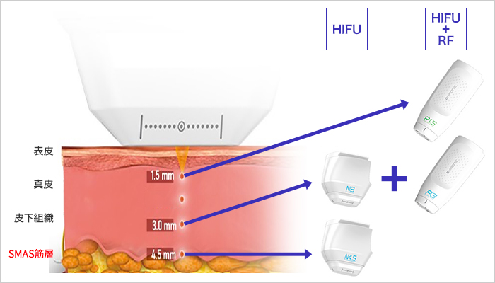- 皮下1.5㎜から4.5㎜までの間を選択的に治療が可能。