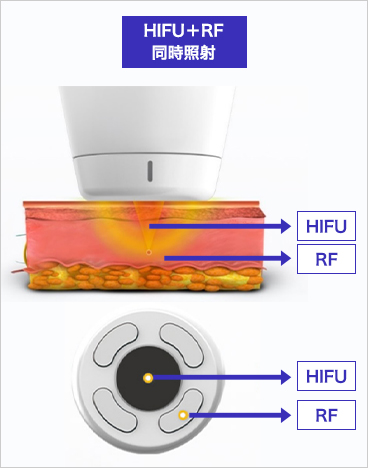 HIFUとRFの同時照射により、よりたるみへアプローチ・施術時間の短縮が可能。